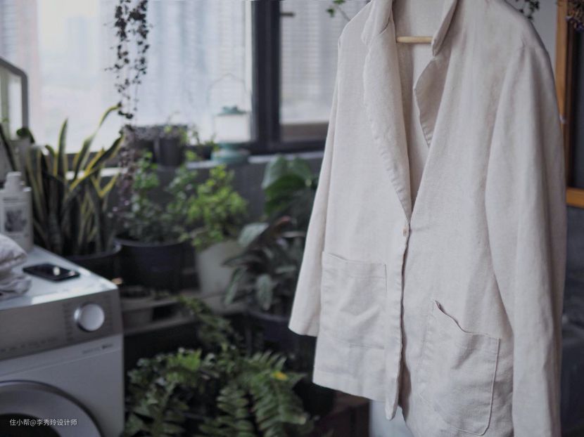 是的,即使是休闲阳台,也可以在最边上利用洗衣柜安排烘干机: