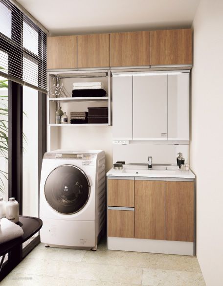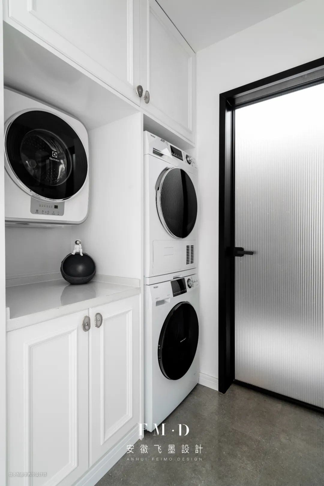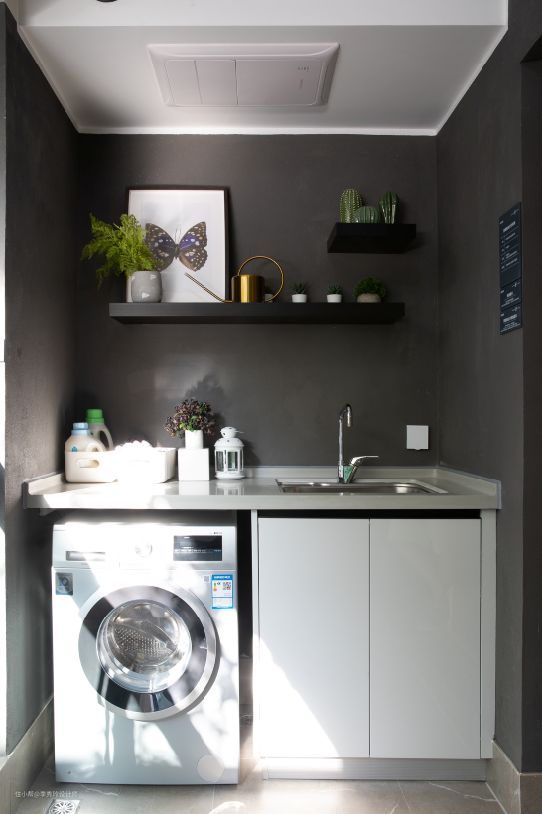 厨房拥有良好的上下水系统,若没有其他空间摆放,洗衣机烘干机也可以放在这里: