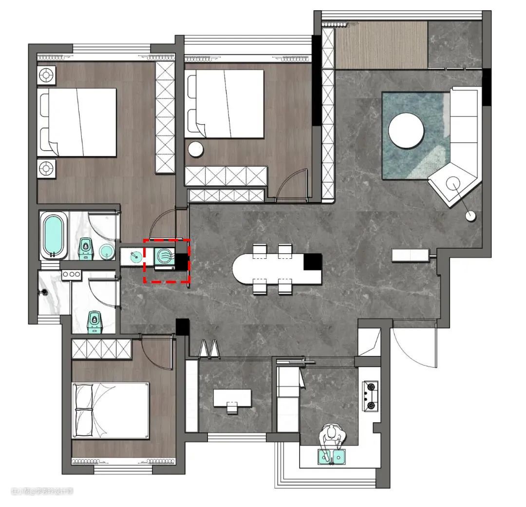 对于大户型来说,有充裕的空间,完全可以独立一个家政间来: