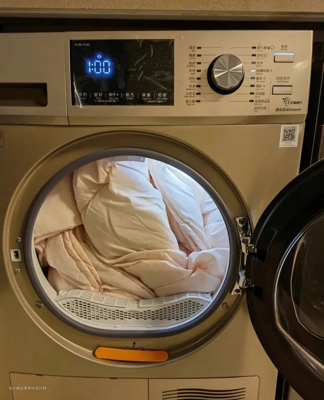一些四件套甚至被子,都可以单独塞进烘干机烘干,松软又卫生,完全不用晾晒。