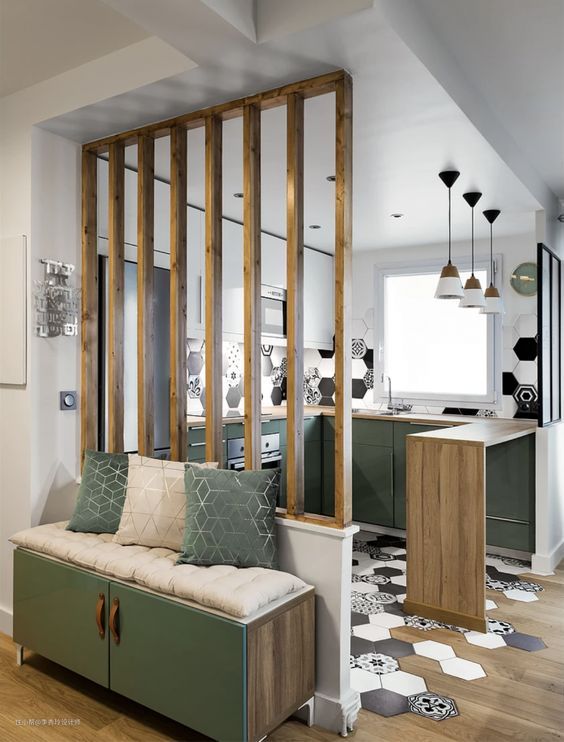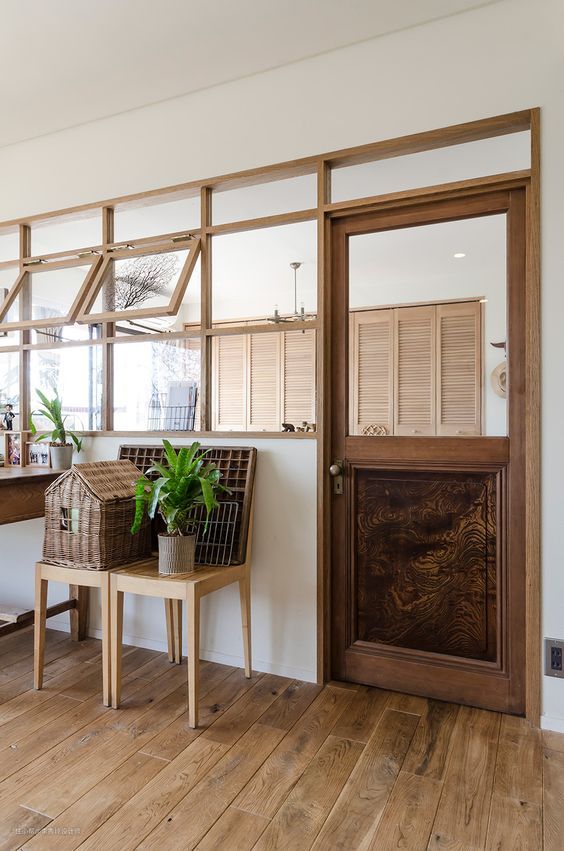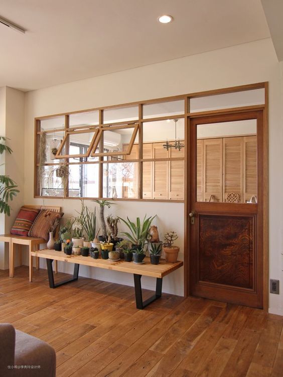想要在入户处增加一个隔断遮挡室内隐私的同时,又不想过于封闭,那么完全可以在隔断上增加个室内窗: