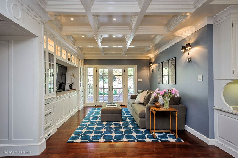 凹凸式吊顶还有一种说法叫“造型吊顶”,因表面做了凸出或凹入的构造处理而得名。这种吊顶造型复杂、形式变化多样、层次感强,适用于比较大气的空间顶面装饰(客厅、中庭、门厅等),常常搭配吊灯、吸顶灯、射灯、筒灯等灯具使用。