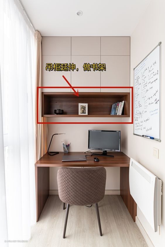 1.改成书房前,最好留出晾晒空间,不要造成两个功能区的冲突。2.阳台通常朝阳,光线就会很强,这样朝北的阳台设计成书房可能是一个不错的选择。