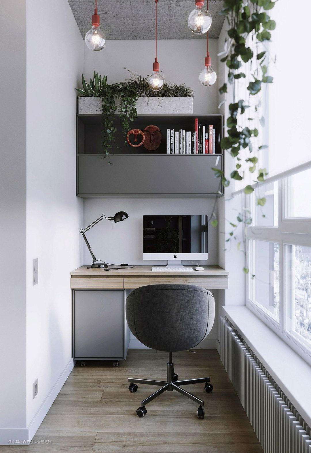 如果家里的空间不够,没有房间去单独做书房了,那不妨在阳台利用一小块空间,满足书房的功能;