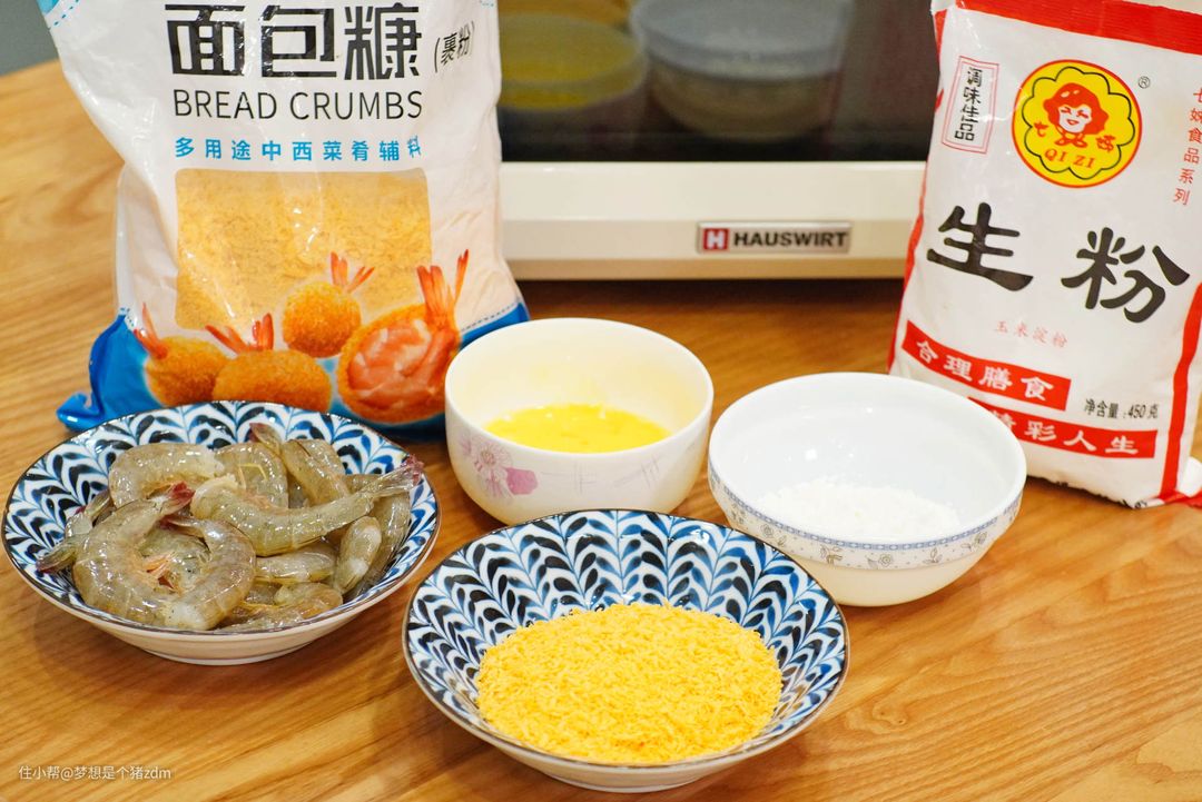 做一个凤尾虾,将虾处理好,只留下尾部一点点虾壳就好了,其他的虾壳要去掉,然后调一点生粉,一个鸡蛋打散成鸡蛋液,处理好的虾先粘一点生粉再粘一层鸡蛋液最后粘一层面包糠。