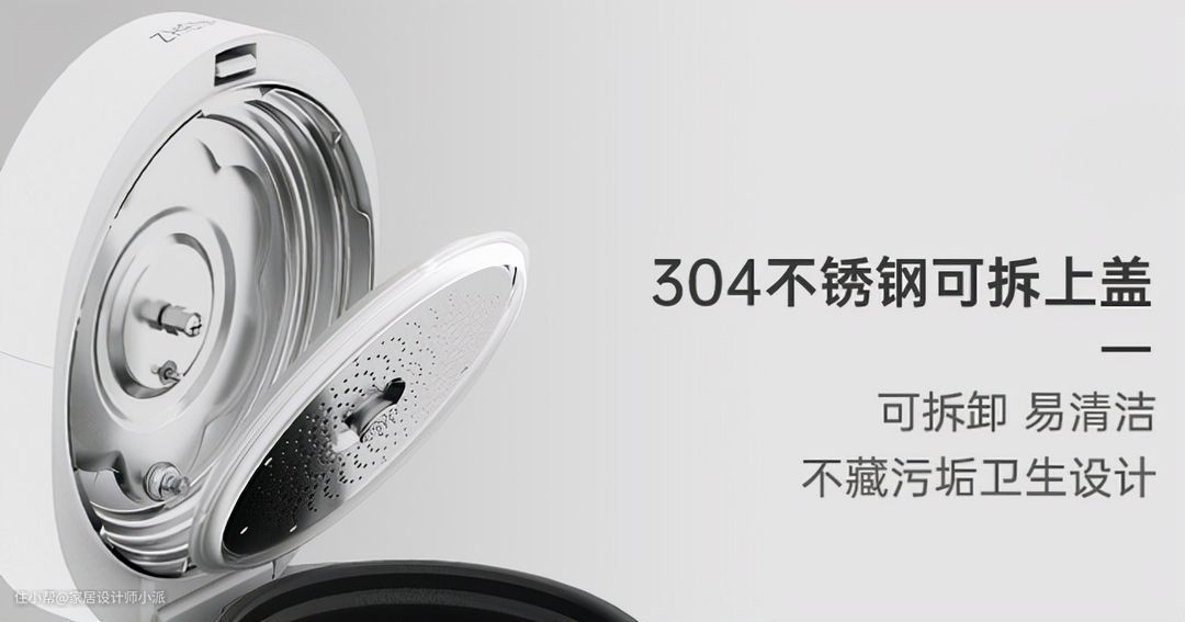 不仅如此,304不锈钢材质的上盖还是可以拆卸的,这样清洁起来更方便,不容易藏污纳垢。