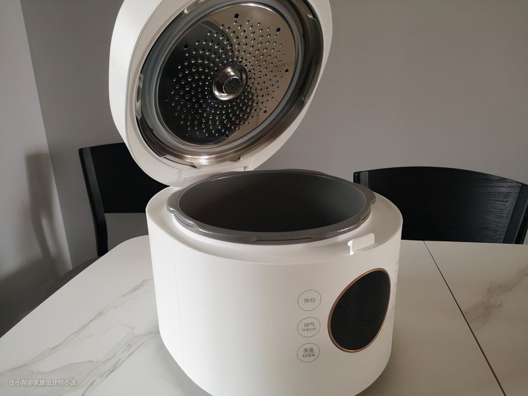 讲真的小派一开始确实是被这款压力锅的颜值所吸引,洁白的锅身、灰色飞碟把手、黑色圆形极简大屏,颠覆了我对以往压力锅“笨重土气”的认知。