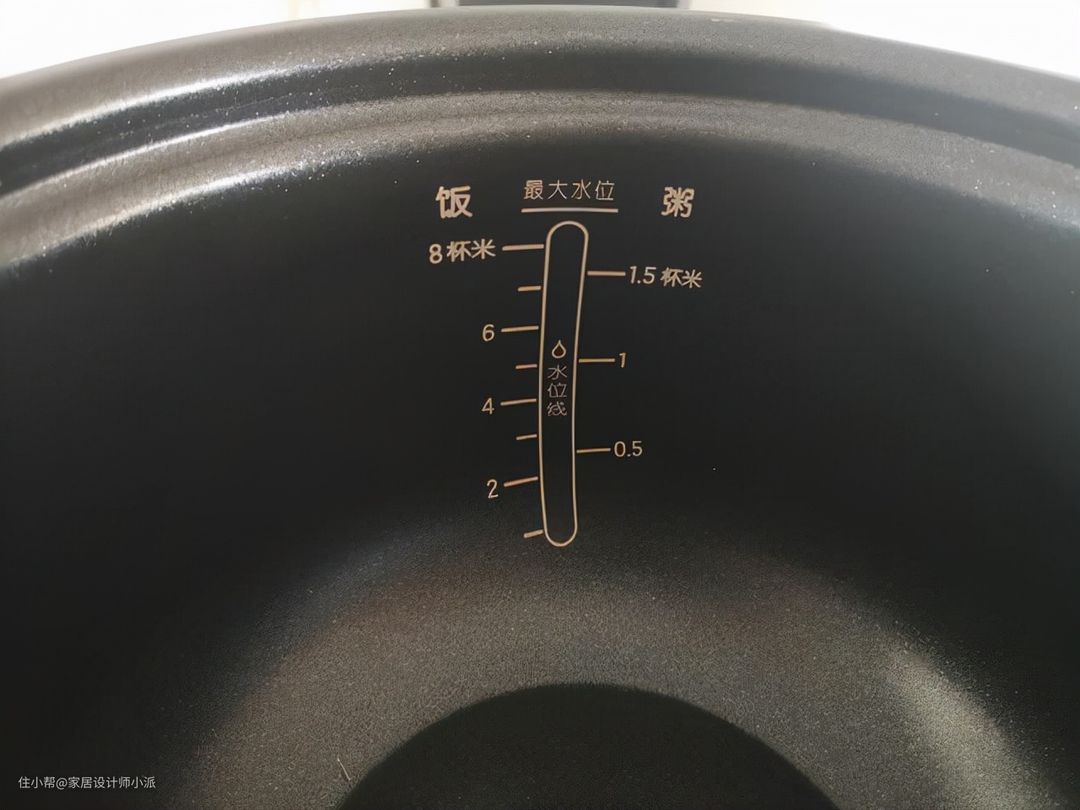 ▲ 有涂层的黑色锅,里面含有刻度,一般是用于煮饭,还可以用来蒸菜、蒸蛋糕。