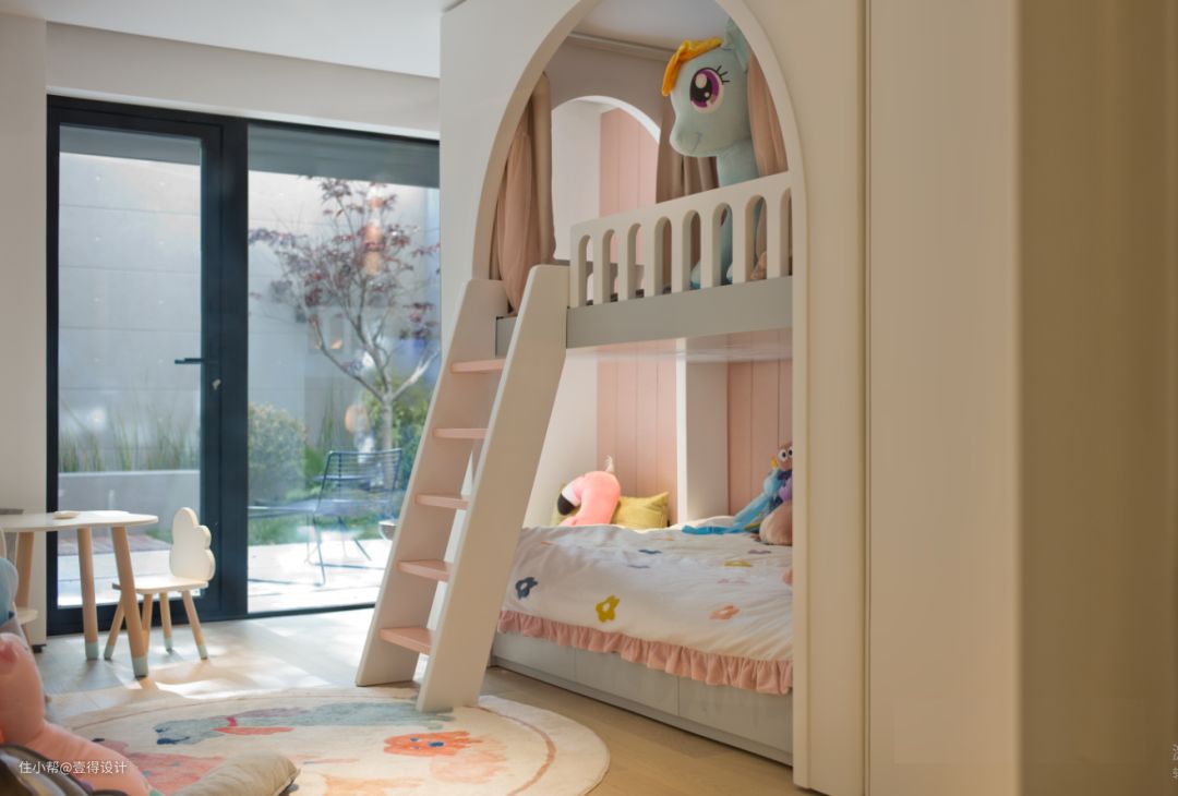 三层的空间安排了睡眠区、书房区、衣帽间、卫生间,完全成为外甥的私人小天地。整体造型及色彩,更是为年轻人所量身定制。父母长辈总是希望把最好的一切,都留给下一代。