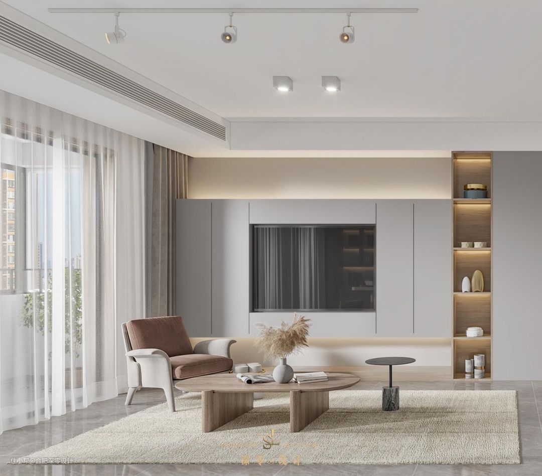 因一面墙,美了整个客厅,这是西子曼城业主家的设计。对电视墙没有过多收纳需求的,可以取舍把地台换成悬空电视柜,效果也很好看,加上隐形灯带,瞬间拥有了漂浮感。