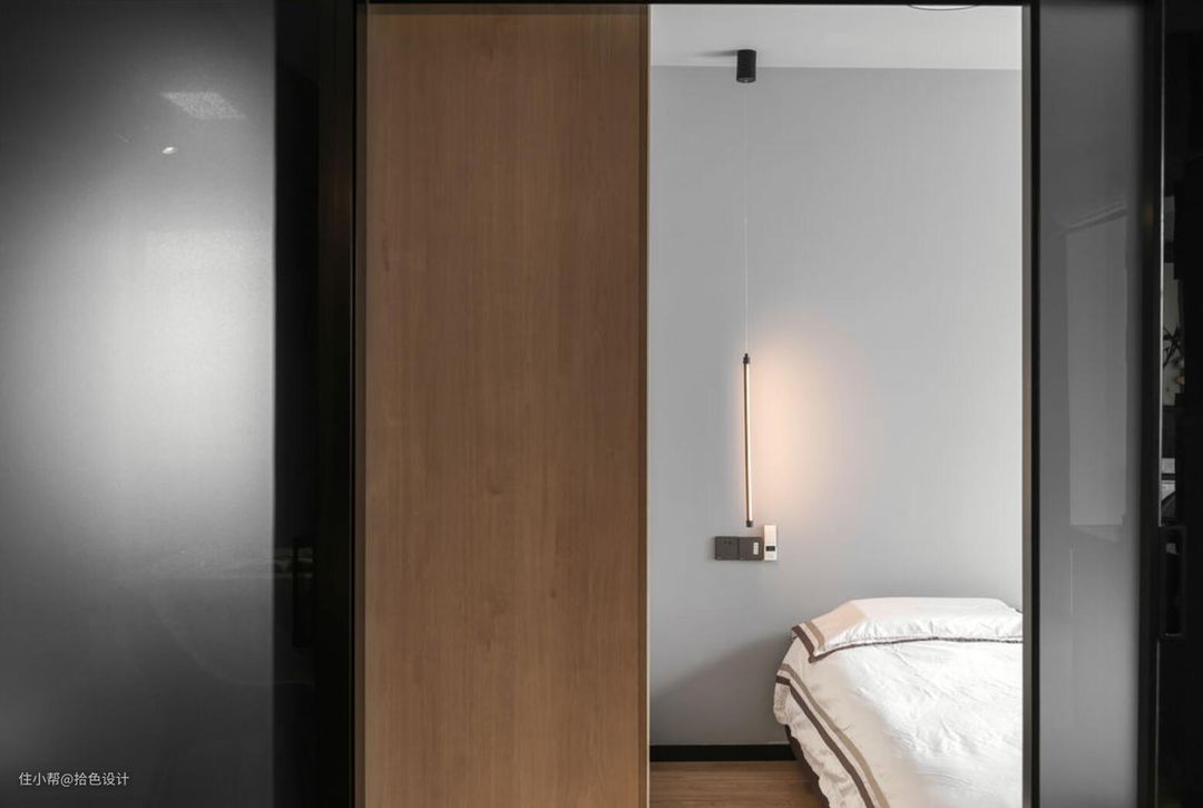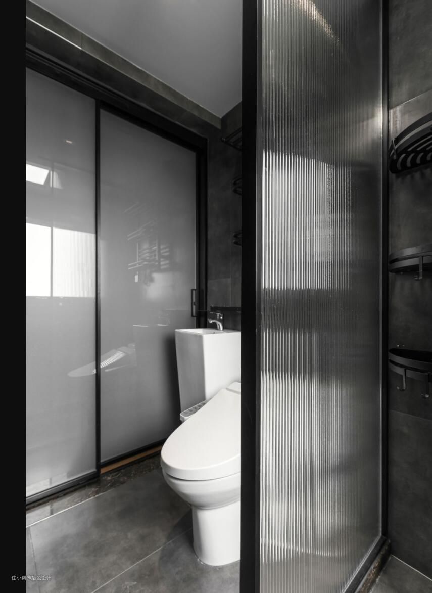 当空间结构重新规划之后,卫生间与主卧,则采用玻璃隔断设计。这样一来,不仅起到了拓展空间的作用,也再一次保证了墙体的工整性。