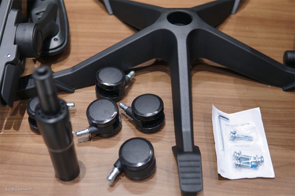座椅,背靠垫,底座,滚轮,支座,螺钉。下面咱们先安装。