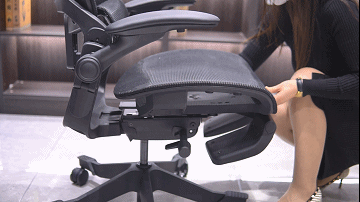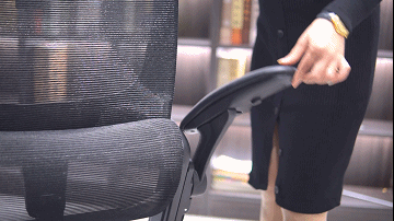 坐姿椅子上时双手自然搭载4D太空臂式扶手上,扶手亲肤柔软还带有弹性,十分舒适,而且能升降,前后和各角度灵活调节。水平面27°调节范围,上下6cm调节范围,翻转90°调节,不想用就可以90度抬起。
