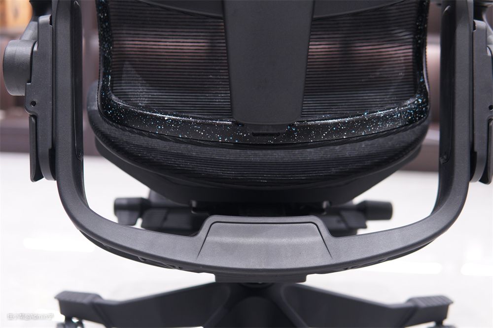 因为腰部受理是比较大的,网友严选星舰的骨骼状腰撑能够全部撑起腰部不变形,在后靠的时候能自适应腰部运动,腰枕的曲面变化,腰部会始终紧贴不落空。细节了,这个后面有星空式的手工撒点喷绘,细节贴合设计主题,创意无限呢。