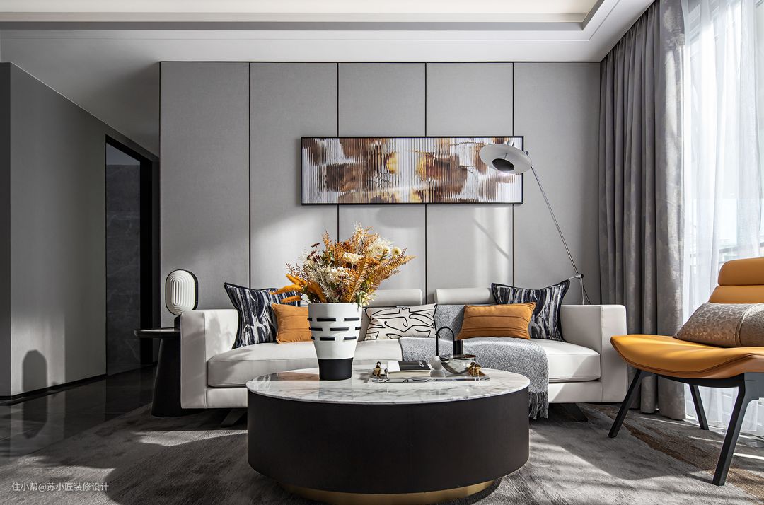 03木饰面沙发背景墙 — 木饰面作为沙发墙,质感温馨而踏实