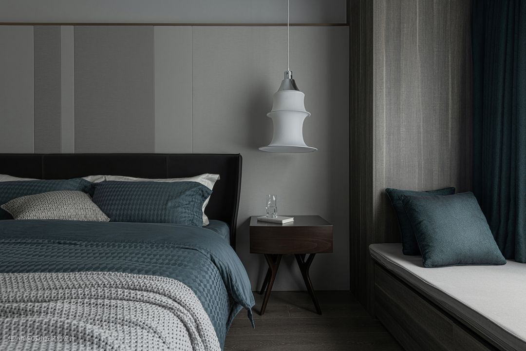 卧室是睡眠休息的空间,而自然浅淡的木质感(比如白橡木),也可以增加卧室空间的舒适与轻松气息,而且木质作为一种亲肤自然的材质,用作床头靠背的效果,也是非常不错。