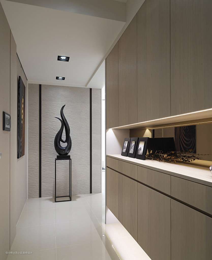 01玄关木饰面背景墙 — 玄关墙面装木饰面,回家感觉更自然