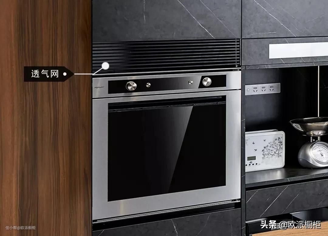 但在这里要注意两点,一是定制前要先确认厨房电器尺寸,以免太大放不下,太小留缝不美观;二是周边至少预留5厘米的散热通道,或在柜体上增加透气网设计,以减少安全隐患。