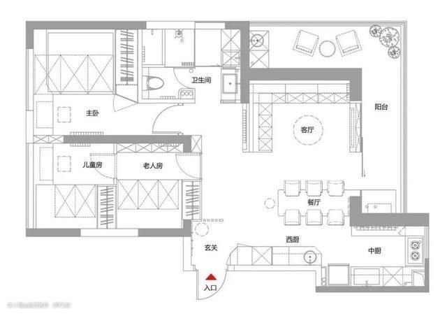 原有的餐厅空间,则被改造成了一个房间,提高了空间利用率,也满足了户主的“三房”需求。