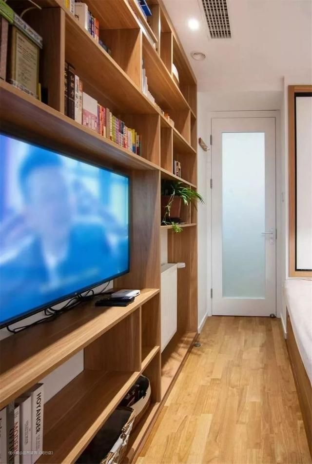 ▼收纳架的中央位置,还预留了电视机的位置,方便父母偶尔观影,设计可谓体贴得当。