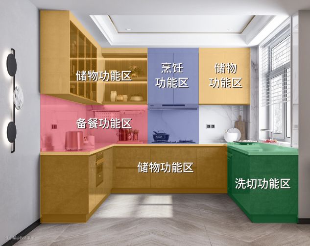 5、厨房3+2插座尽量控制在4-8个的区间,且建议在洗、切、煮、存四个区域都平均分配,方便使用。