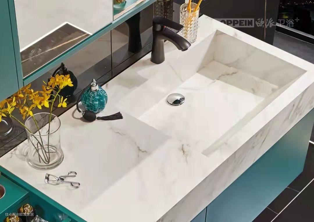 2、想清洁方便,首选一体式台盆,一块抹布擦一圈即可,还避免了台上盆、台下盆那样,用久了会在接缝处发霉黑一圈的尴尬。