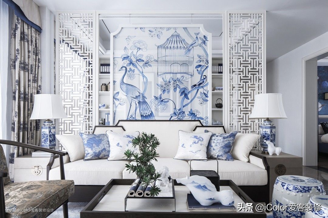 老房翻新:180㎡青花瓷之家,客厅用屏风隔出书房