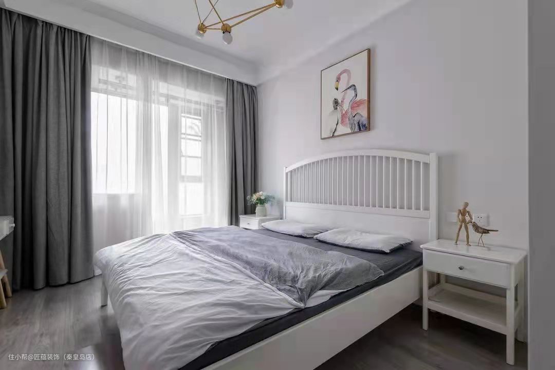 窗户也是立面占据比较大面积的一-部分,而窗帘作为布艺材质,也是一种比较温馨舒适的软装元素,装上窗帘后,可以让空间显得更加情趣优雅。