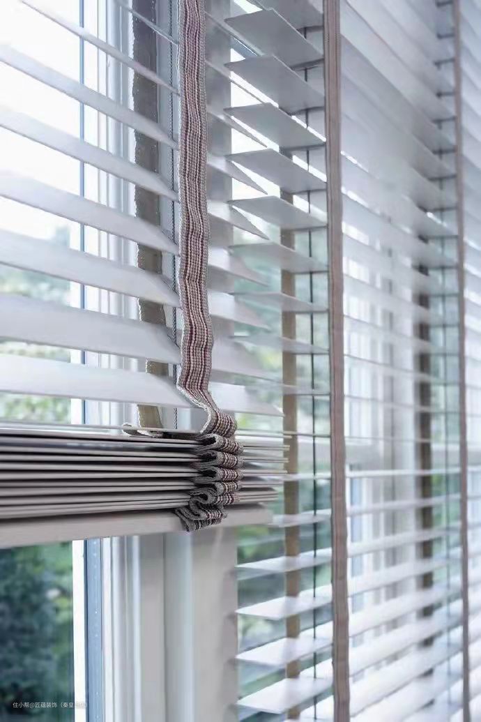 百叶帘类似于纱帘一-样,可以比较灵活控制光线,同时保障空间隐私性。一般在面积比较小的窗户中,百叶帘会是比较合适的选择。
