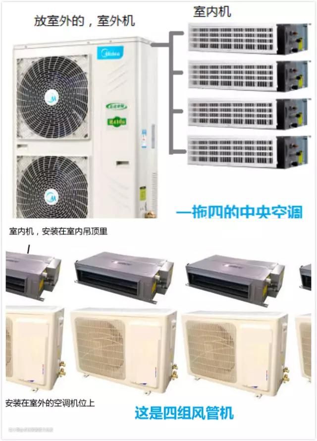 基本上都是外机搭配内机使用。我把挂机和柜机统一归类称为普通空调,方便和中央空调比较。
