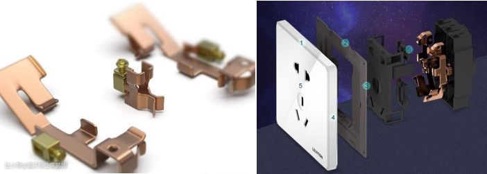 插座中最重要的是载流部件,也就是常说的“铜片”。铜片越厚、重量越重、韧性越好,插座质量也就越好。我们普通消费者,可以凭借“质感”来简单判定。如果一个插座的分量感十足,插座使用时有导程滑入感和恰当的阻尼感,基本可以判定质量不错。