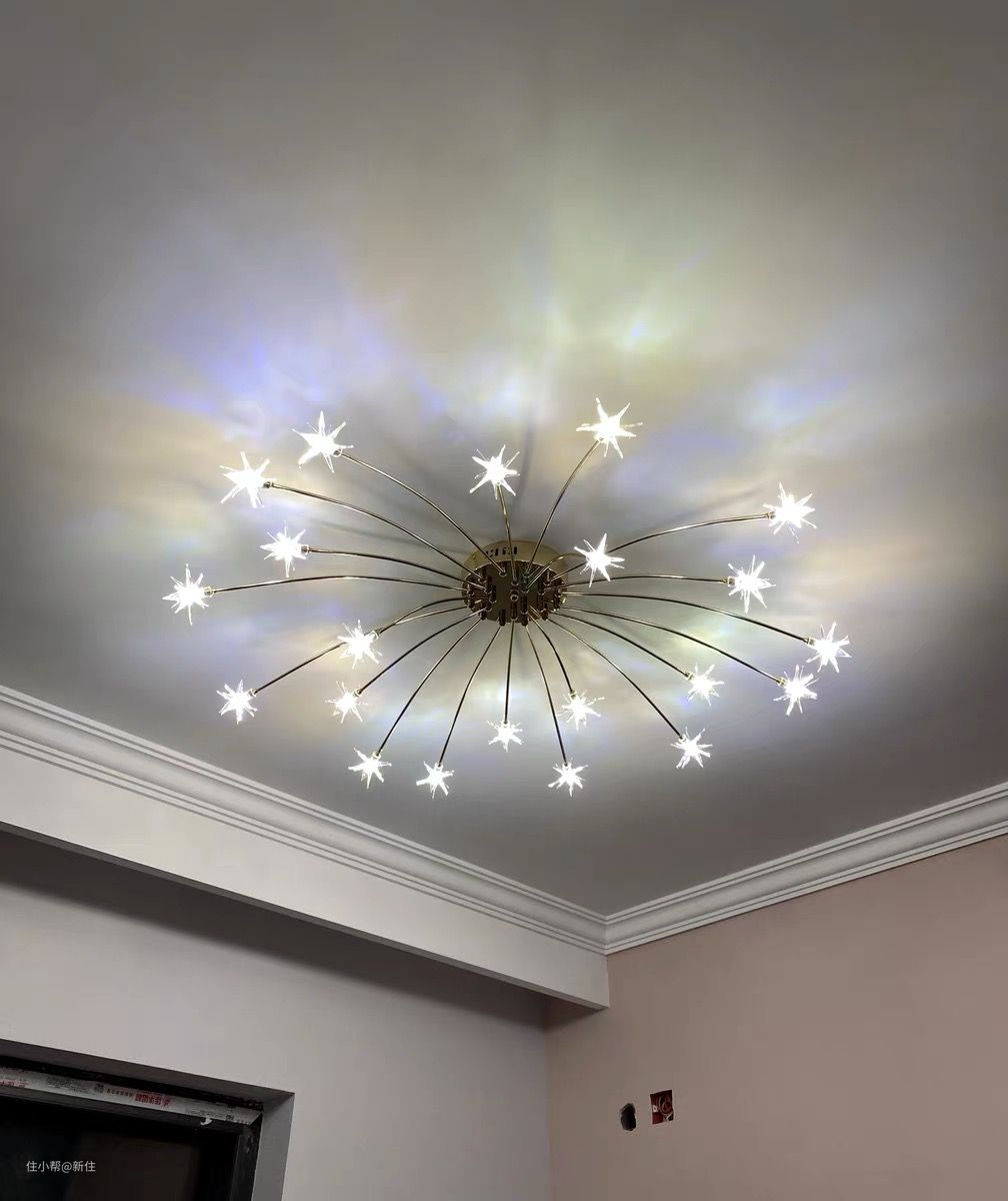 这是某网红博主拍的满天星吊灯,说不用吊顶,一盏满天星把家里的颜值拉满。