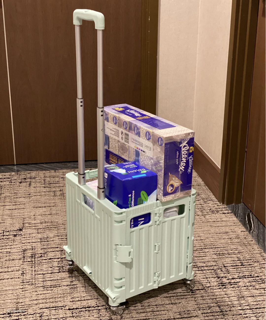 说到收快递,目前的年轻人,有了新的收快递方式,用折叠买菜车,快递拉回家更省力。