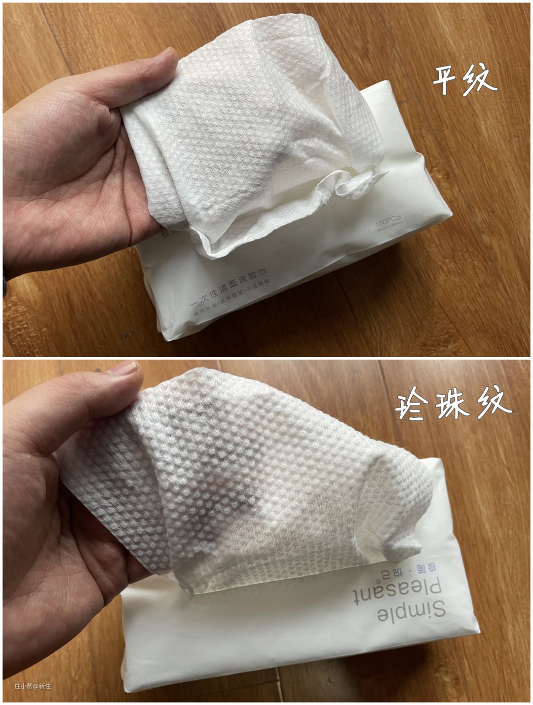 可能有人担心洗脸巾的清洁力,其实在洗脸巾选的时候,尽量选珍珠纹和平纹的AB面洗脸巾,可在卸妆的时候强力,平时擦脸上水的时候舒适。