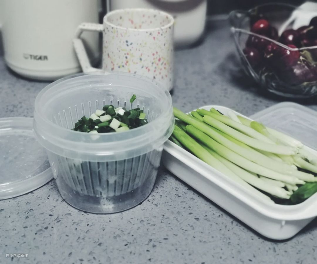 这个表面看是个收纳工具,用它来收纳葱花。姜片、蒜片,可防止它们干瘪,但其实它作为厨房工具的意义更大。