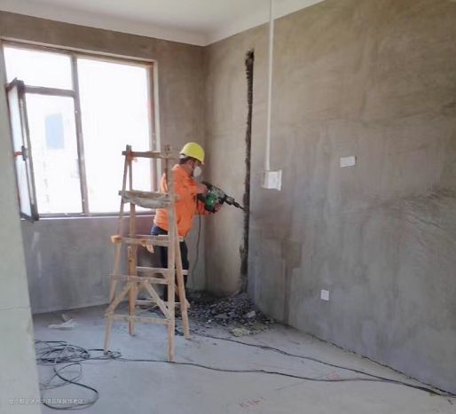 在遇到新老墙交接处时,必须铲除原墙体粉刷层,确保让新老墙更加牢固,后期不会出现开裂。