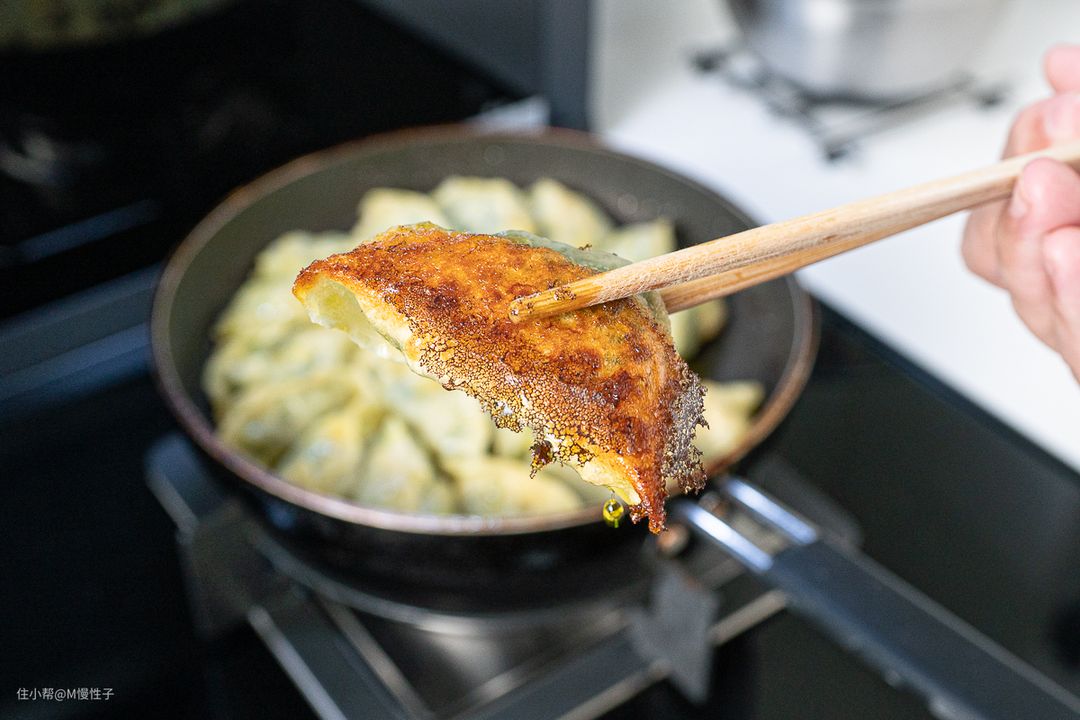 再全程大火煎个锅贴,锅贴讲究火要大,底部脆脆的有木有。
