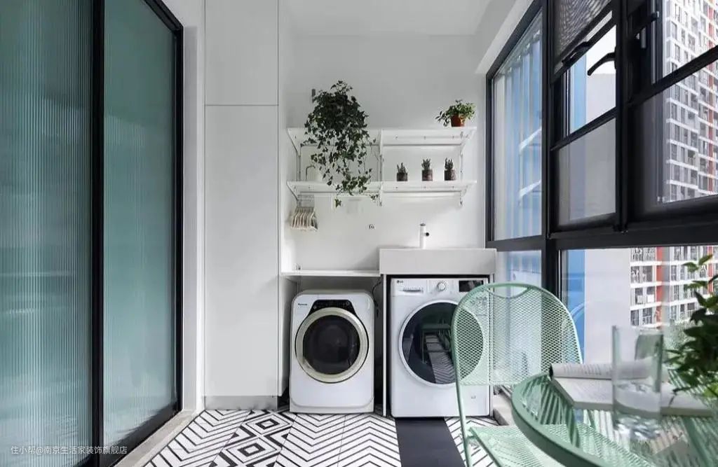 『直接露出管道』如果你家准备做生活阳台,可以直接露出管道,或者摆上大盆绿植遮挡管道,弱化管道的存在感。