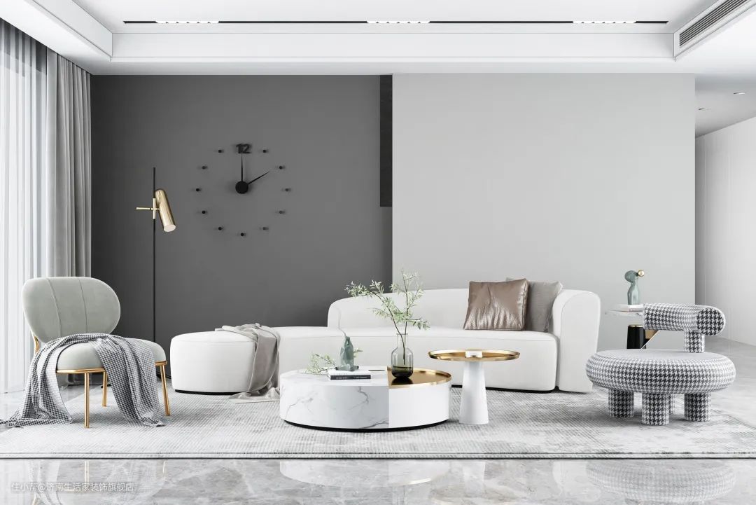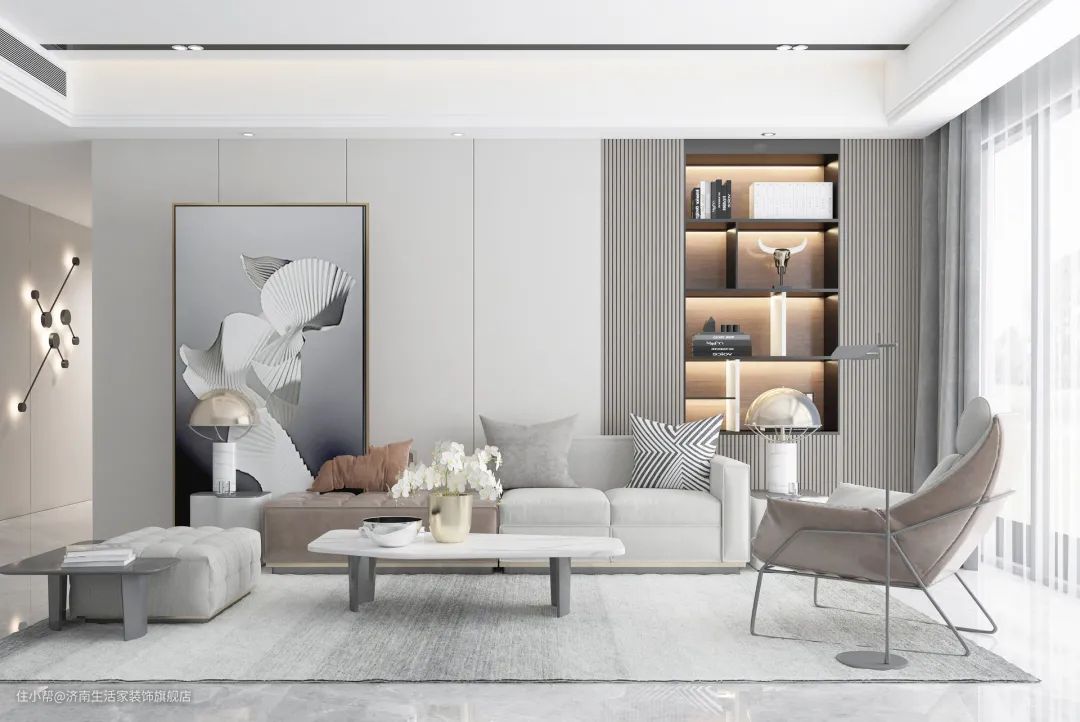 至于另外一边的吊顶,要么靠窗一侧做吊顶,要么靠沙发墙或电视墙一侧做吊顶,增加空间层次感,也不会显得压抑。