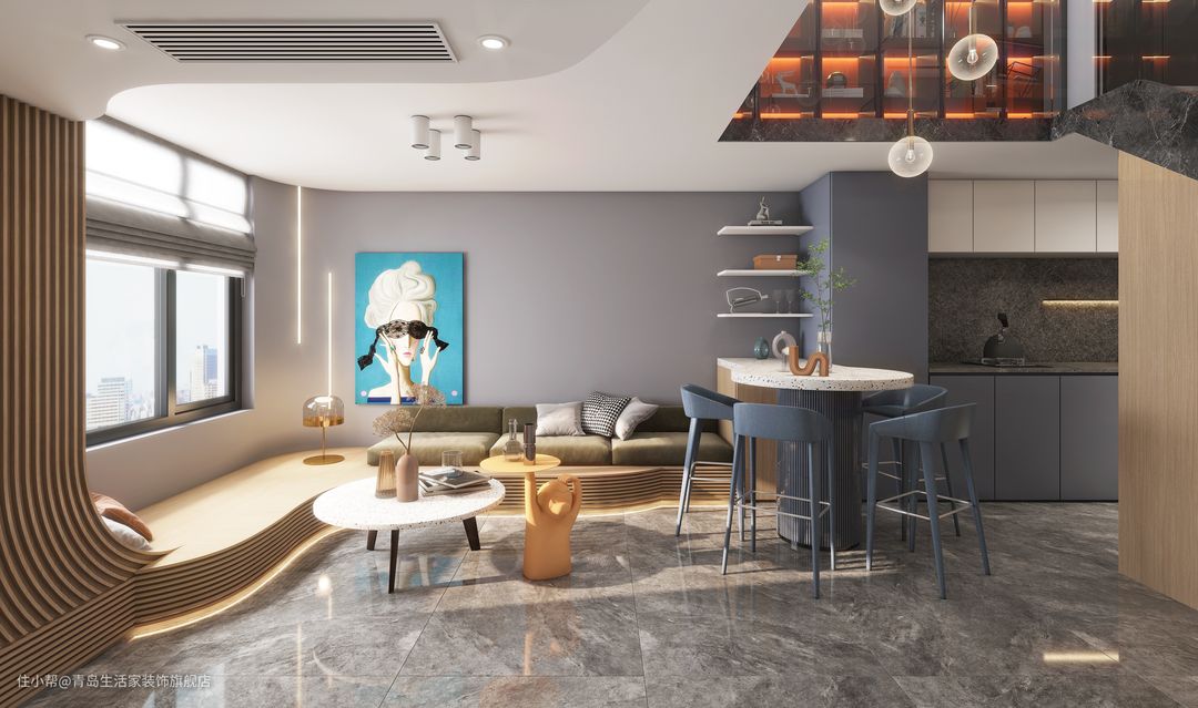 现代简约SOHO,玻璃做隔断,沙发放地台~