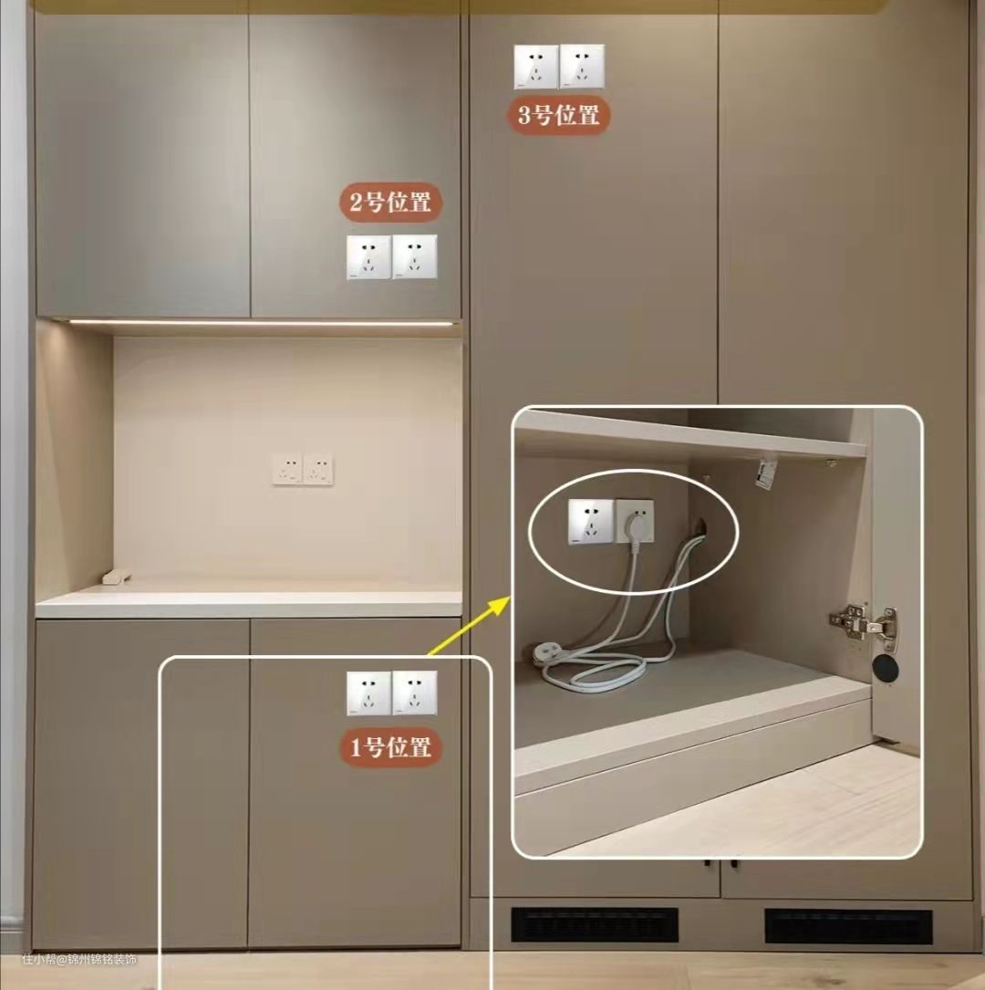 留在隔壁柜子里,或者冰箱上方的柜子里,高低无所谓、能插到就行。别放背后,插拔和检修都不方便。