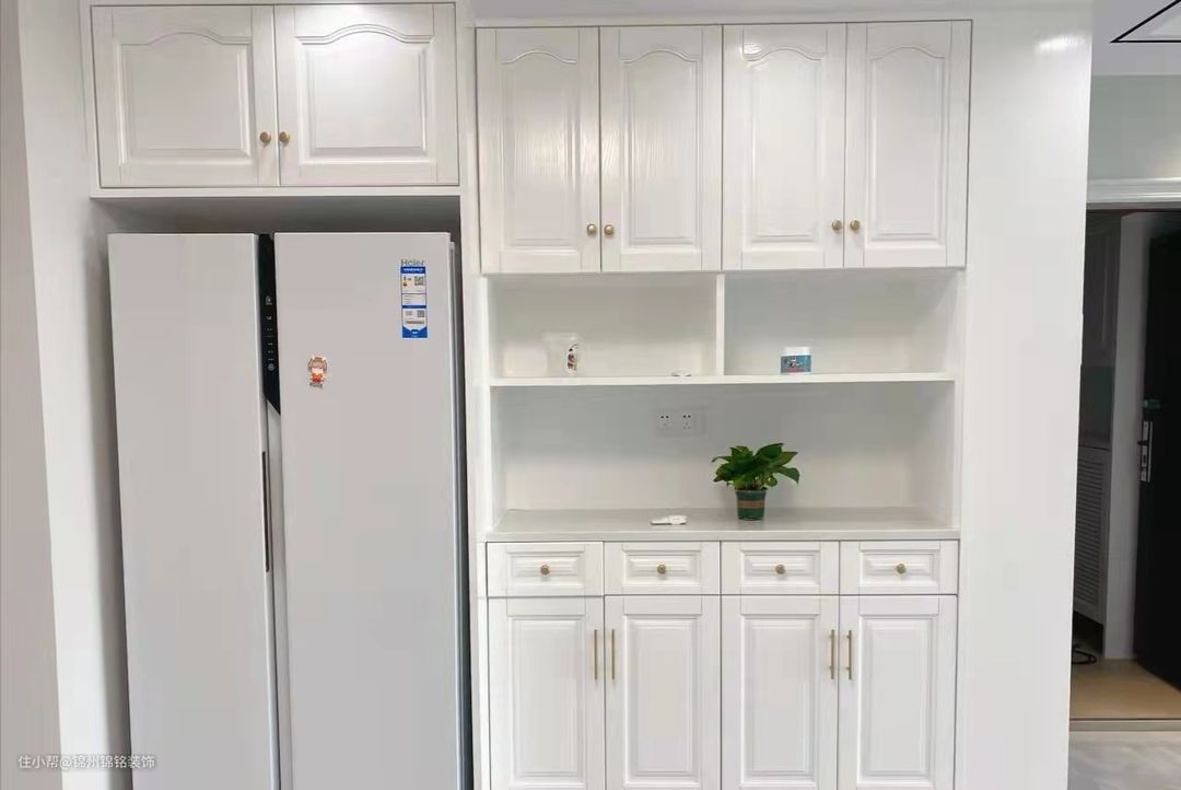 最重要的预留好散热,嵌入式冰箱是不能落地式安装。为了保证散热通畅,建议踢脚线处预留10cm高度以上,底板与背部之间需要开一条40mm以上的散热空隙出来顶部预留方式与底部同理,确保背部散热循环流通。