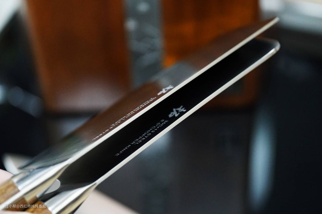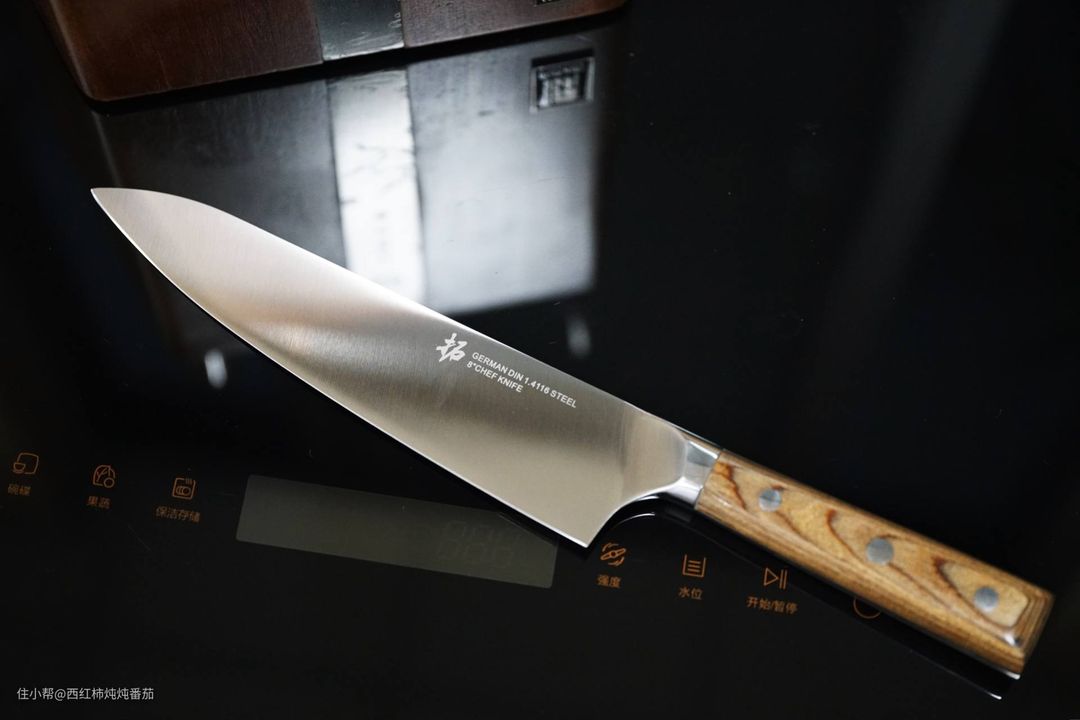 不过楼主个人最喜欢的还是这把造型优雅的厨师刀,平日里切牛排之类的操作都由它完成。另外,这种厨师刀夏天的时候用来切西瓜也比菜刀要更加好用 ▲