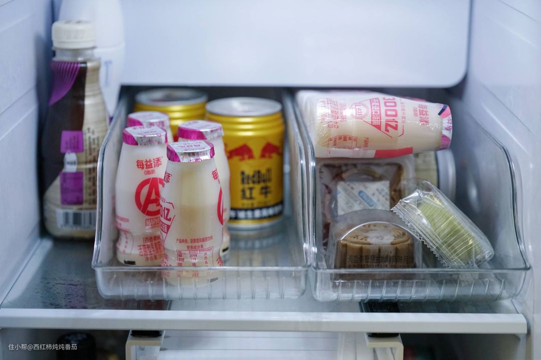 但是重点来了!没有人会告诉你,在冰箱这种局促的小空间内安装的时候,这东西并不适合居中安装!这东西并不适合居中安装!这东西并不适合居中安装!因为每次收纳自封袋,其实都是从其中一侧导轨滑入。如果收纳架居中,其实是非常不方便操作的!