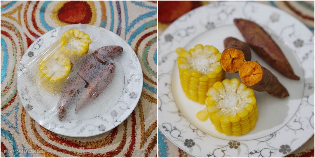 有些朋友看到这里可能还是怀疑它在“蒸”方面的能力,这里东芝将一个细节做得很好:蒸菜有叶菜和根菜两个模式:当蒸玉米、红薯这种较大块头的“根菜”时,可以选择对应自动菜单中的数字“15”。不过在处理的时候也需要保鲜膜——但不同于“叶菜”的处理,“根菜”是将整个盘子都用保鲜膜裹起来 ▲