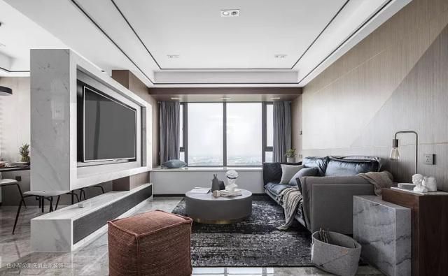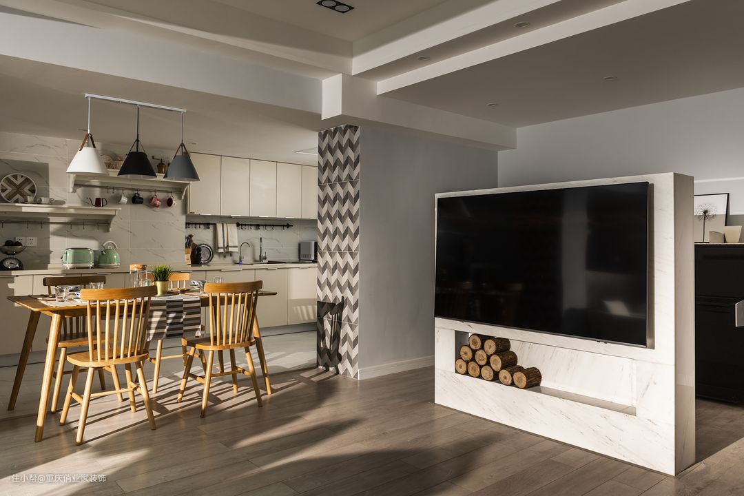 小户型不好设计电视背景墙?可以像上面一样用矮墙做隔断嵌入电视。这样在视觉上既不破坏空间整体感,又有明确的区域划分,并且空间也不会显得太小、太逼仄,是不是很赞?