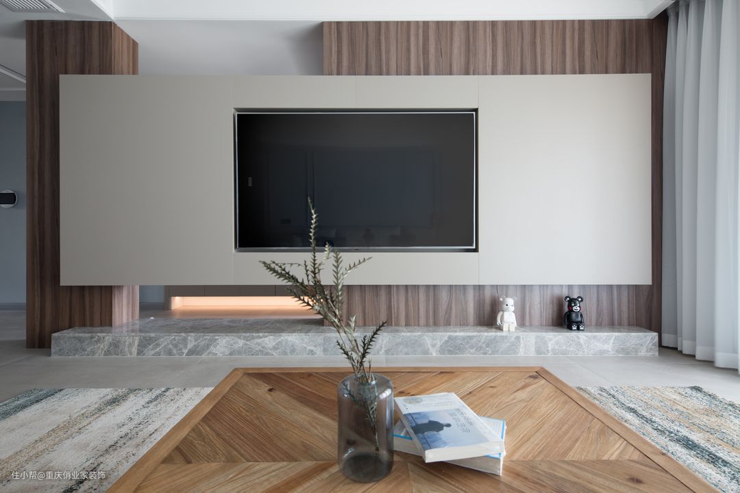 对于想要拥有更多收纳空间的业主来说,收纳式电视背景墙是一个不错的选择。收纳式电视背景墙,让电视和储物空间融为一体,在视觉上具有整体感又有统一性,还能让七零八碎的杂物都有好去处。