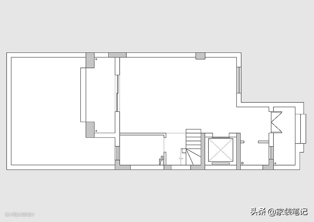 玄关(过道)也是本套房子的电梯间,虽然面积不大,但是楼层比较高,如果没有电梯,需要爬四楼就很累了,住进去之后楼上就根本没人想上去了,都会窝在一楼生活了。玄关(过道)只有电梯间旁边做了一小组嵌入式的鞋柜,满足基本的换鞋功能,外面还有真正的入户玄关用来收纳全家人的鞋子。
