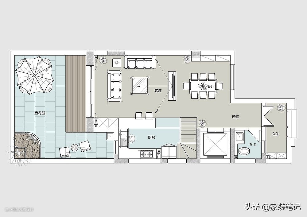 这是一套四层的联排别墅空间,总面积只有260平米,所以平均到每层的面积就很小了,单层面积就只有65个平方了,只比一般的单身公寓大一些。其实住260平米的别墅,还不如260平米的大平层,别墅浪费的面积太多了,利用率并不是很高,不过好处就在于别墅拥有花园,大平层没有。