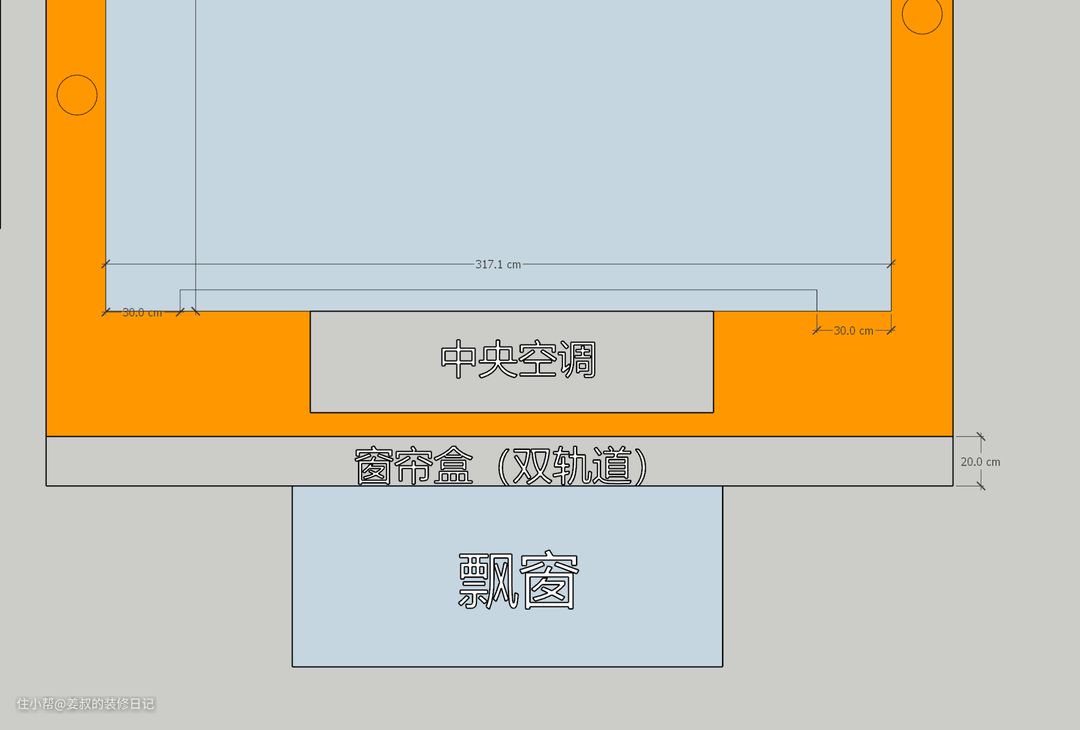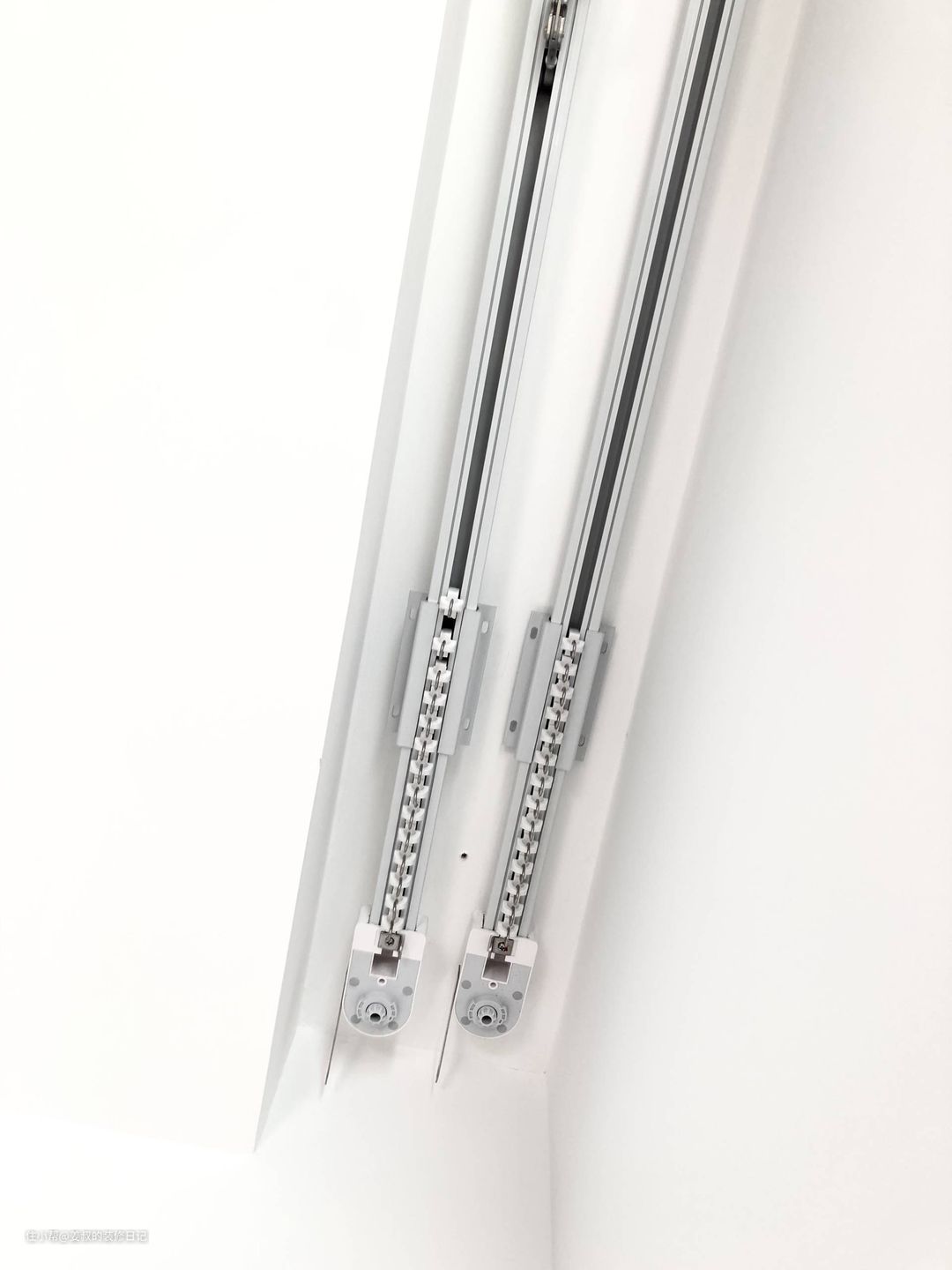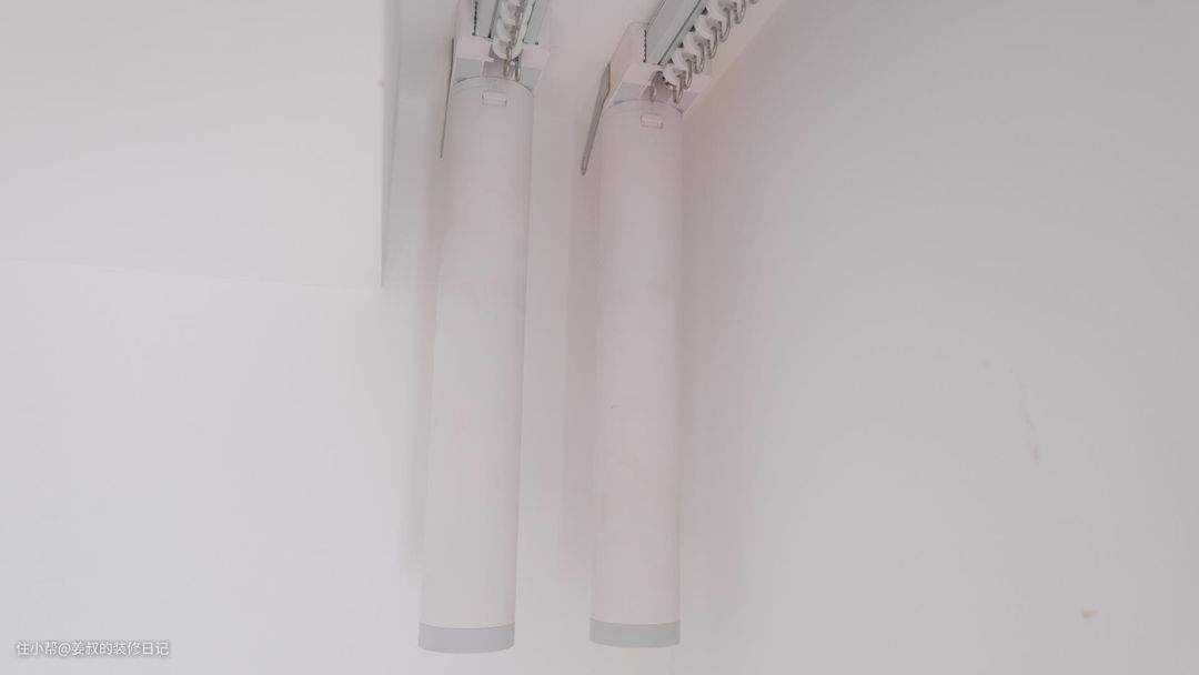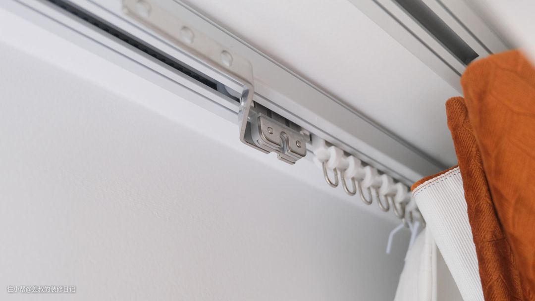 最后就是轨道的安装,常见的就是顶装和侧装两种方式,如果是为了美观,我强烈建议在装修时预留窗帘盒,不仅美观而且可以确保避光效果。唯一需要注意的是预留的尺寸,我家装修时客厅就是按照双轨预留了20cm,正好可以装两条轨道。